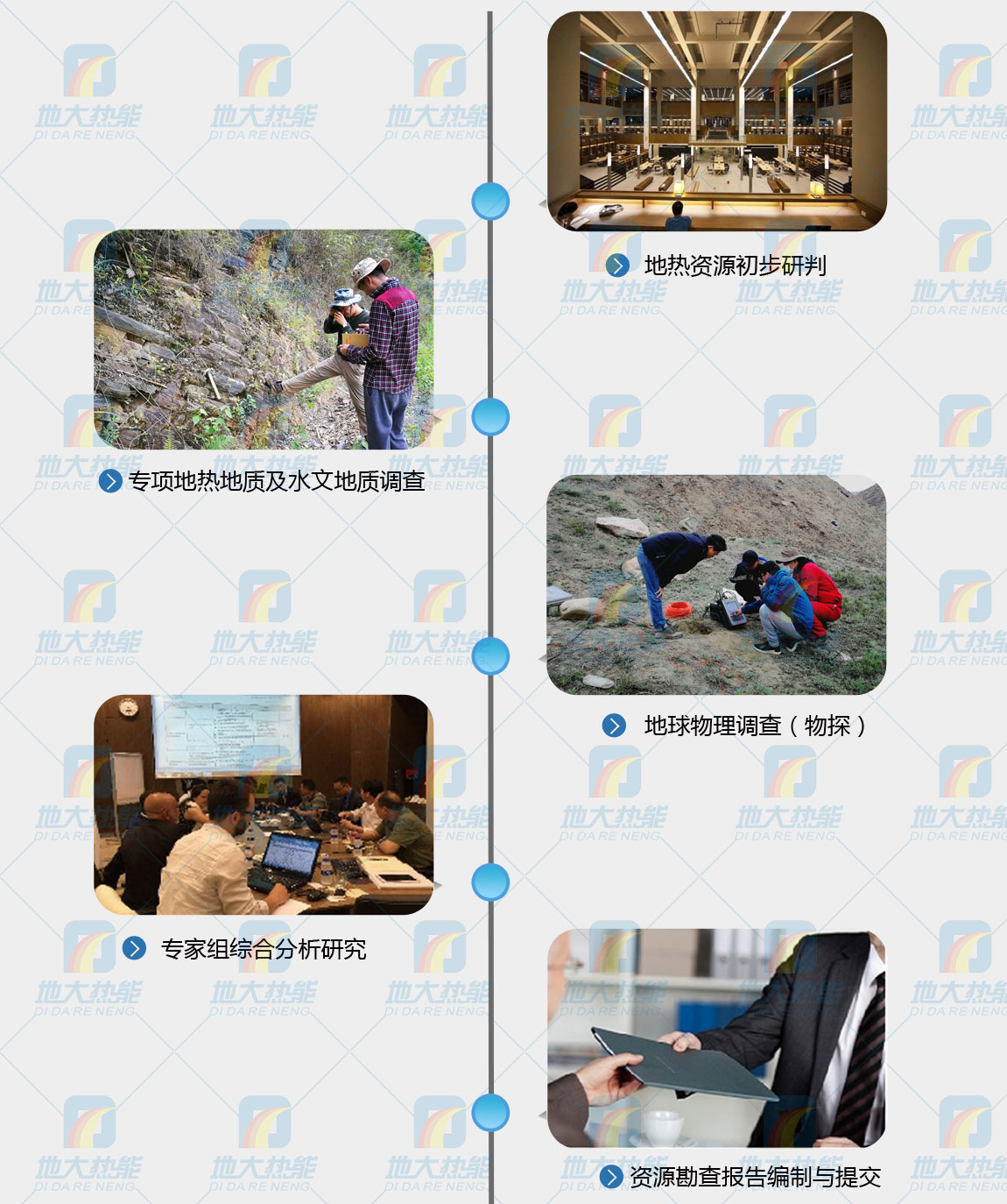 3.報告完整:憑借中國地質大學(武漢)地熱開發研究所的科研實力,我們對外輸出的勘查報告涵蓋了項目區熱儲層、熱儲蓋層、地熱流體等參數的詳細分析,從而評估資源儲量、可持續開發量,提供合理的開發意見。