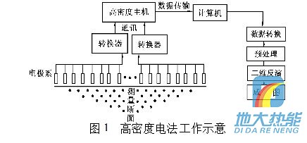 高密度電法數(shù)據(jù)采集系統(tǒng)由主機(jī)、多路電極轉(zhuǎn)換器、電 極系三部分組成。多路電極轉(zhuǎn)換器通過(guò)電纜控制電極系各電極的供電與測(cè)量狀態(tài);主機(jī)通過(guò)通訊電纜、供電電纜向多路電極轉(zhuǎn)換器發(fā)出工作指令、向電極供電并接受、存儲(chǔ)測(cè)量數(shù)據(jù)。 高密度電法野外工作裝置形式較多,總電極數(shù)與點(diǎn)距可 根據(jù)場(chǎng)地條件與勘察深度任意選擇。固定斷面掃描測(cè)量方式數(shù)據(jù)采集結(jié)果其視電阻率斷面為一倒梯型剖面;變斷面連續(xù)滾動(dòng)掃描測(cè)量方式其視電阻率斷面為一平行四邊形剖面。