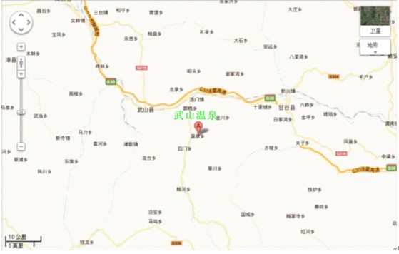 武山縣位于甘肅省東南部,地處秦嶺山地北坡西段與隴中黃土高原西南邊緣復(fù)合地帶,海拔在1365-3120米之間。地理坐標(biāo)為東經(jīng)105°05'0''~105°07'00'',北緯34°36'1''~34°37'3''。