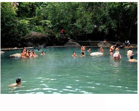 甘肅天水街子溫泉風景經(jīng)測定水溫39.5攝氏度,屬天然洗浴水溫,水質(zhì)為重碳酸鈉鈣型,含有20多種礦物質(zhì)及微量元素,具有醫(yī)療、美容、保健之奇效。 |
