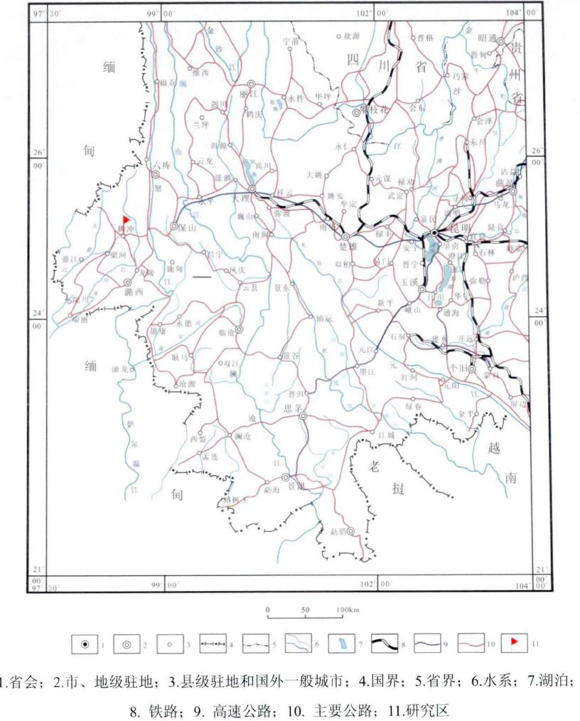 騰沖縣位于高黎貢山西側,總體地勢北高南低,山脈走向為北東一西向及南北向,與區域構造線基本一致。高黎貢山與怒江并列向南蜿誕,高黎貢山峰脊一線海拔多在3000m以上;而怒江河谷海拔僅500—900m,區內最高峰為高黎貢山中段的大腦子,海拔3780.9m;最低點為盈江縣拉沙河與穆雷江交匯處,海拔僅210m;最大高差達3570.9m,一般高差在400—2000m之間,屬中高山中一深切割地區。縣城西側為高中山地貌景觀,谷深坡陸;東側為中山山地稍為平緩,但切割密度較大;中部為斷陷谷地,河流階地發育,地勢平坦開闊。騰沖地區構造運動活躍、斷裂構造發育、巖漿活動頻繁、火成巖分布廣泛、新生代火山活動、現代水熱活動異常強烈,溫沸泉眾多。