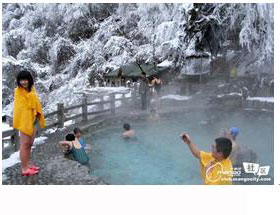 四川理塘毛埡溫泉風景溫泉周圍的玄武巖石長期受熱水和硫磺浸蝕,形成了不同形狀的許多小池子,可供沐浴的室內(nèi)和露天溫泉不計其數(shù),花上5-15元錢就可以盡情享受。